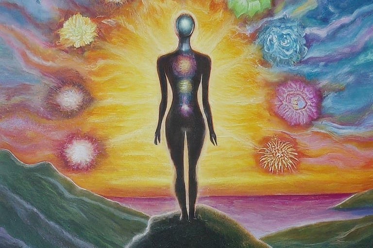 Anandamaya Kosha: Deep within, beyond the mind, lies your true essence – pure bliss and infinite consciousness.